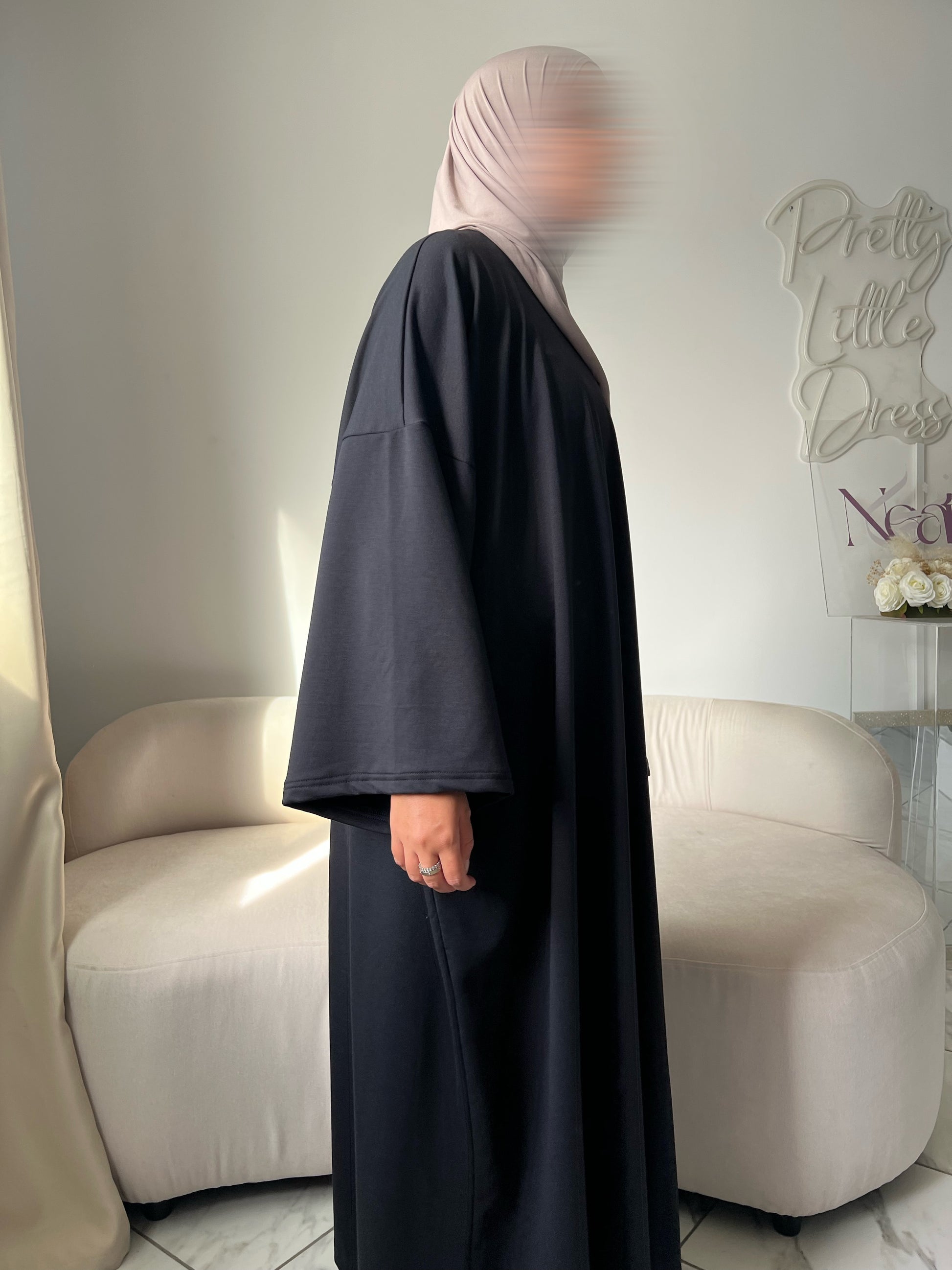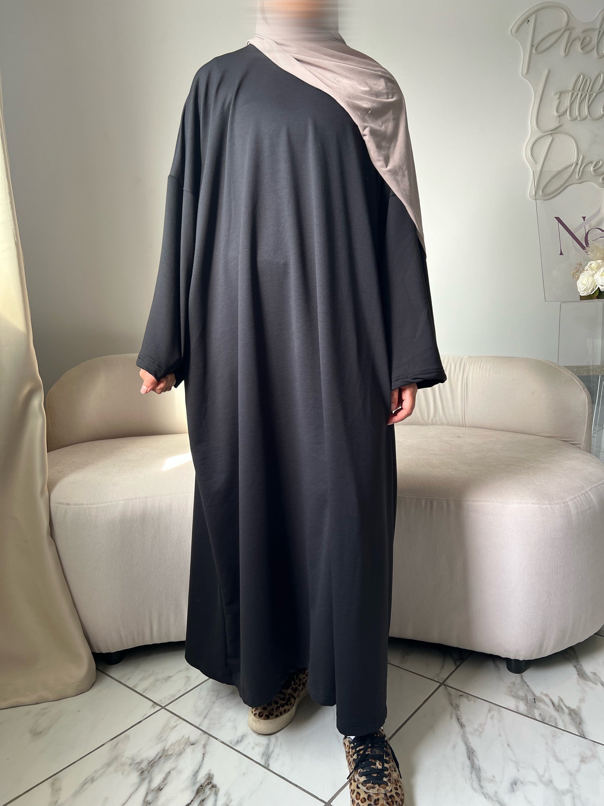 Inspirée du confort d’un t-shirt oversize, cette abaya en coton doux mêle simplicité, amplitude et modernité pour un look décontracté sans compromis sur l’élégance.